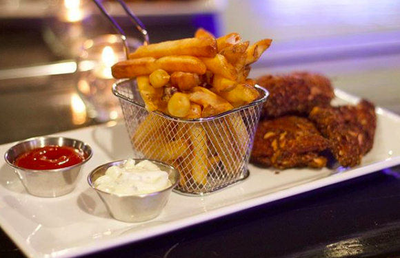 Coconut coated tilapia with fresh crispy fries from Sage Fine Dining.