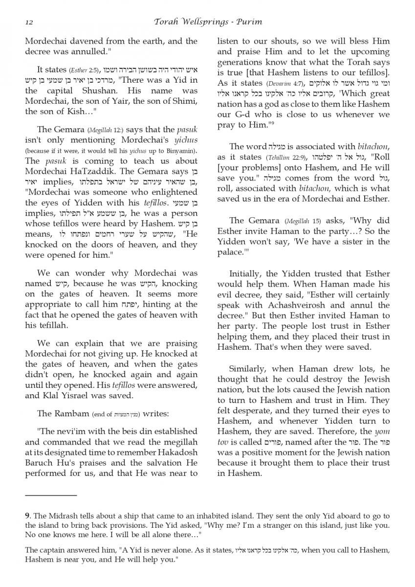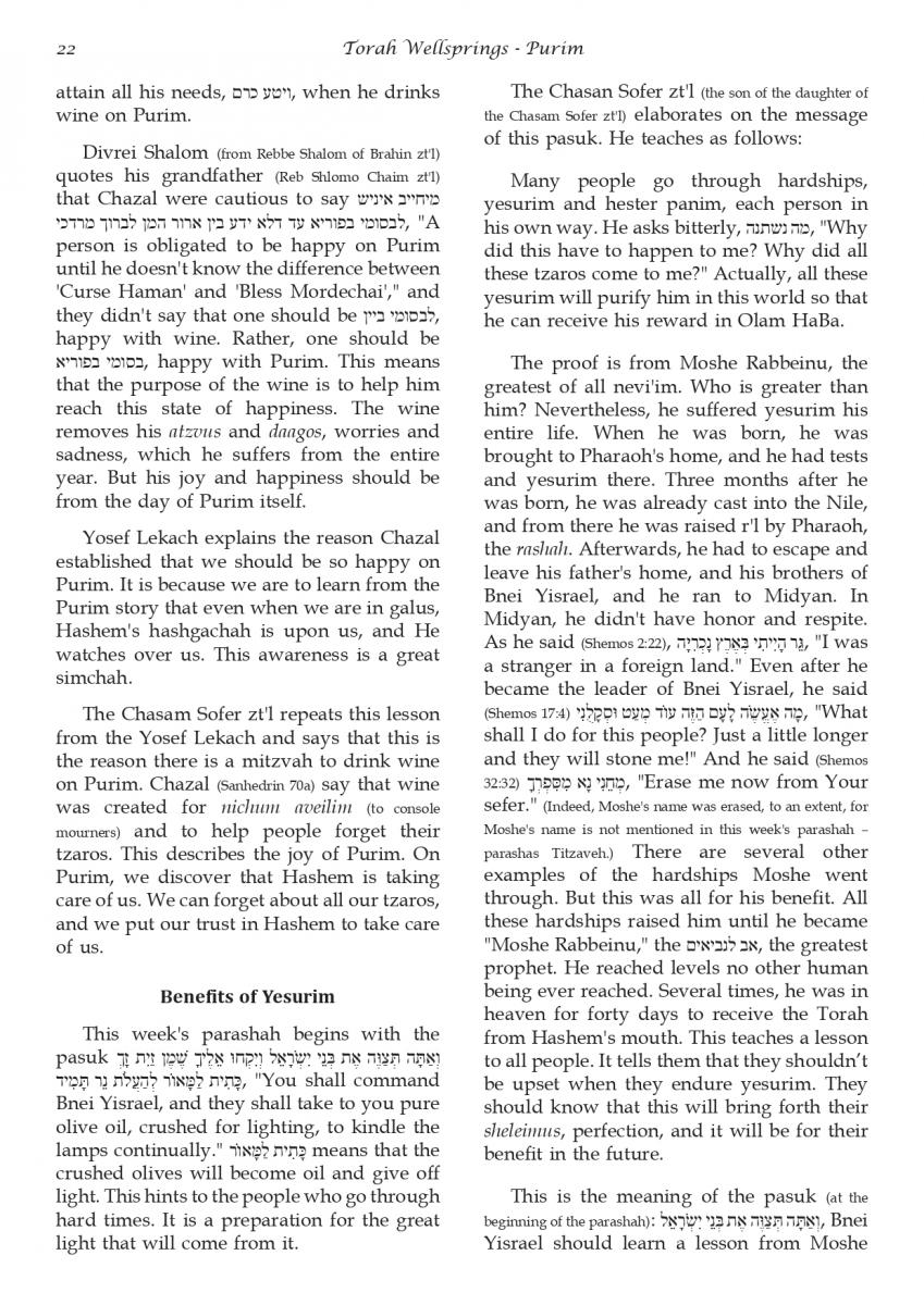 The weekly collected thoughts on the week's parsha from Rabbi Elimelech Biderman Shlita