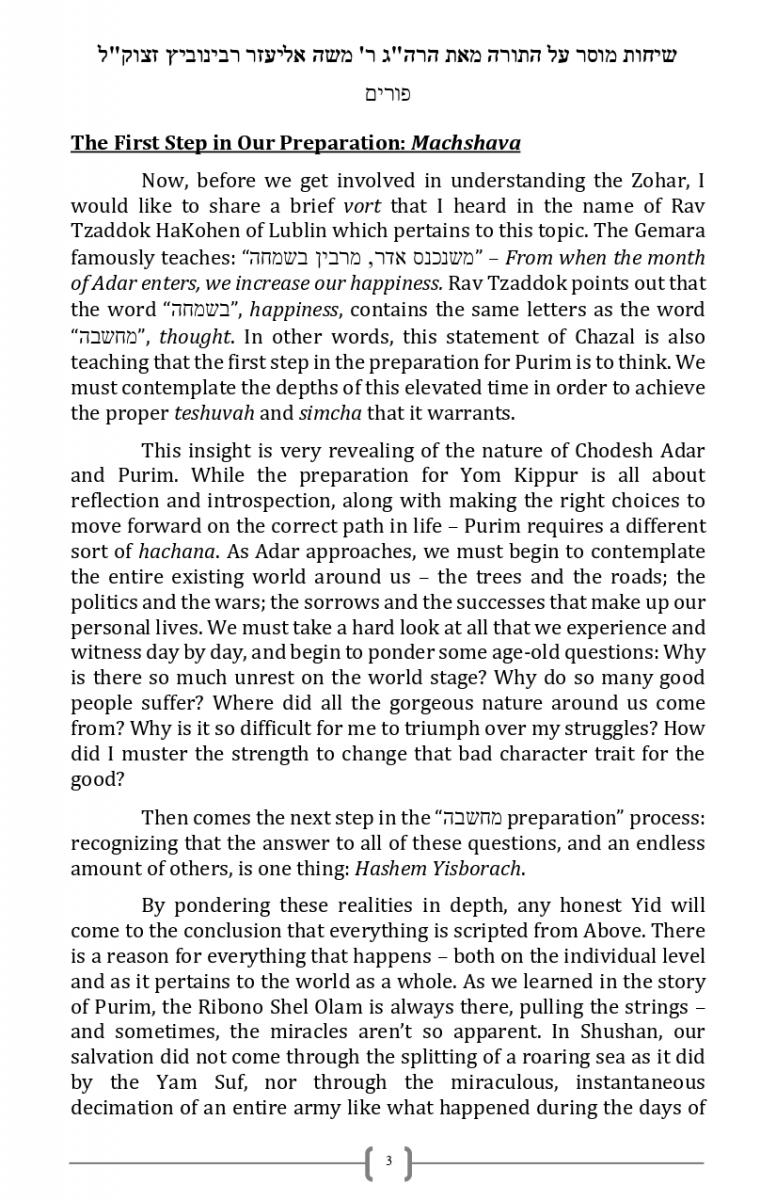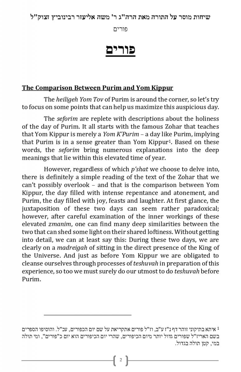 The Comparison Between Purim and Yom Kippur