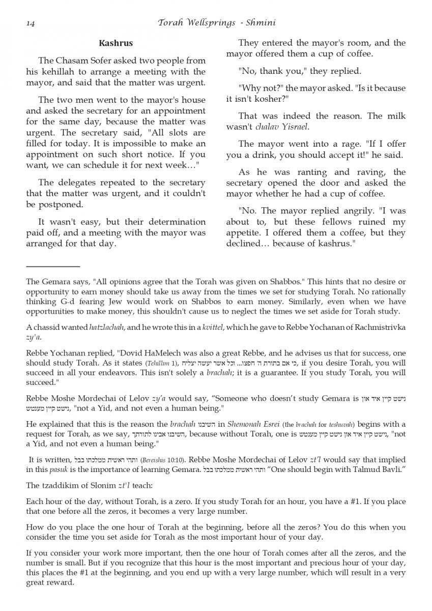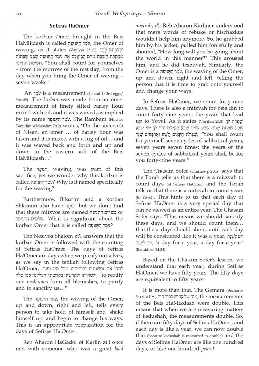 The weekly collected thoughts on the week's parsha from Rabbi Elimelech Biderman Shlita