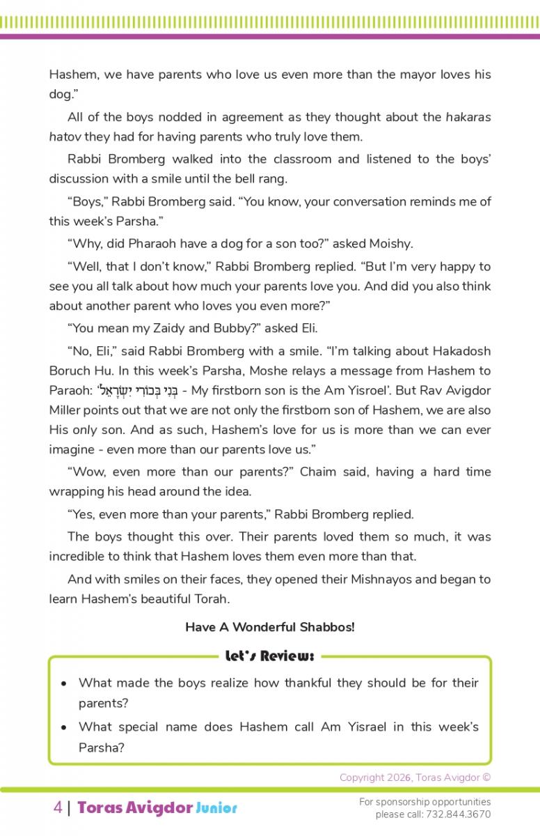 Toras Avigdor was founded with the goal of spreading Rav Miller’s Torah and Hashkafos bot for adults and children.