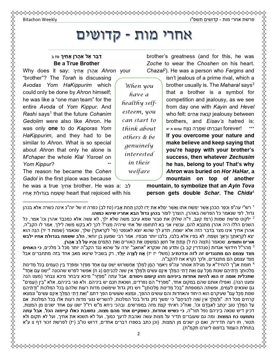 - “You shall be holy, for I, Hashem, your G-d, am holy”