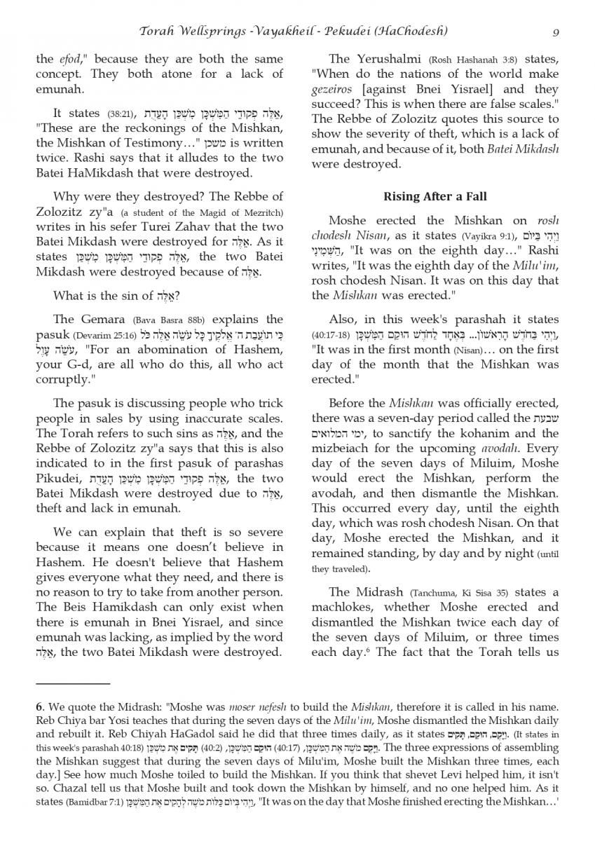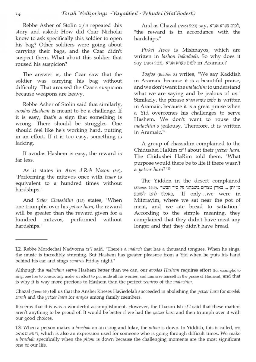 The weekly collected thoughts on the week's parsha from Rabbi Elimelech Biderman Shlita