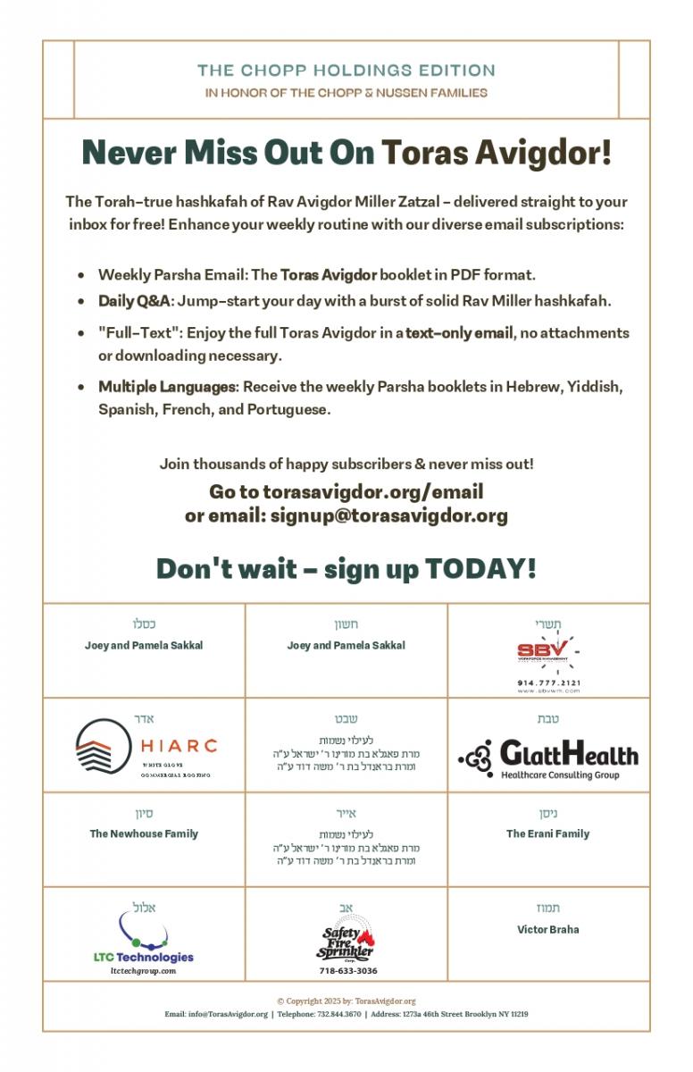 Toras Avigdor was founded with the goal of spreading Rav Miller’s Torah and Hashkafos.