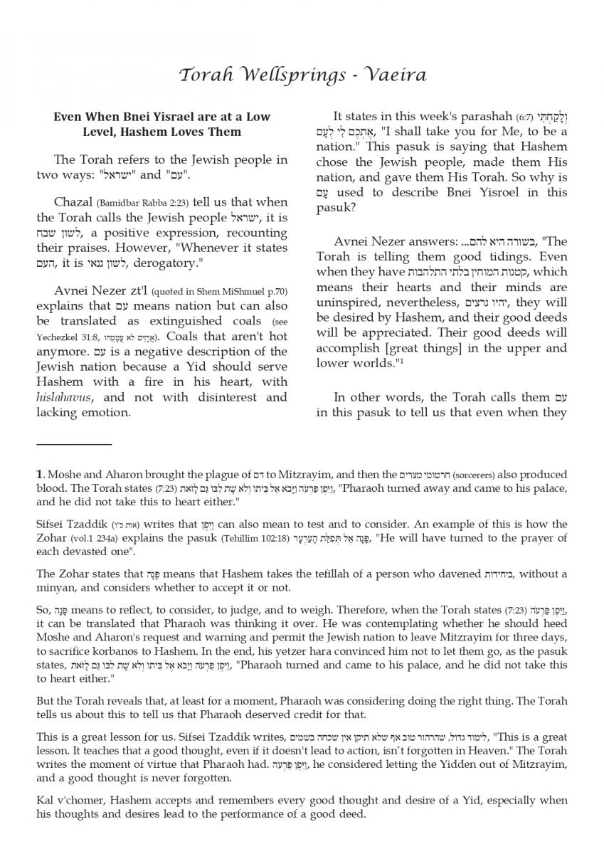 Even When Bnei Yisrael are at a Low Level, Hashem Loves Them