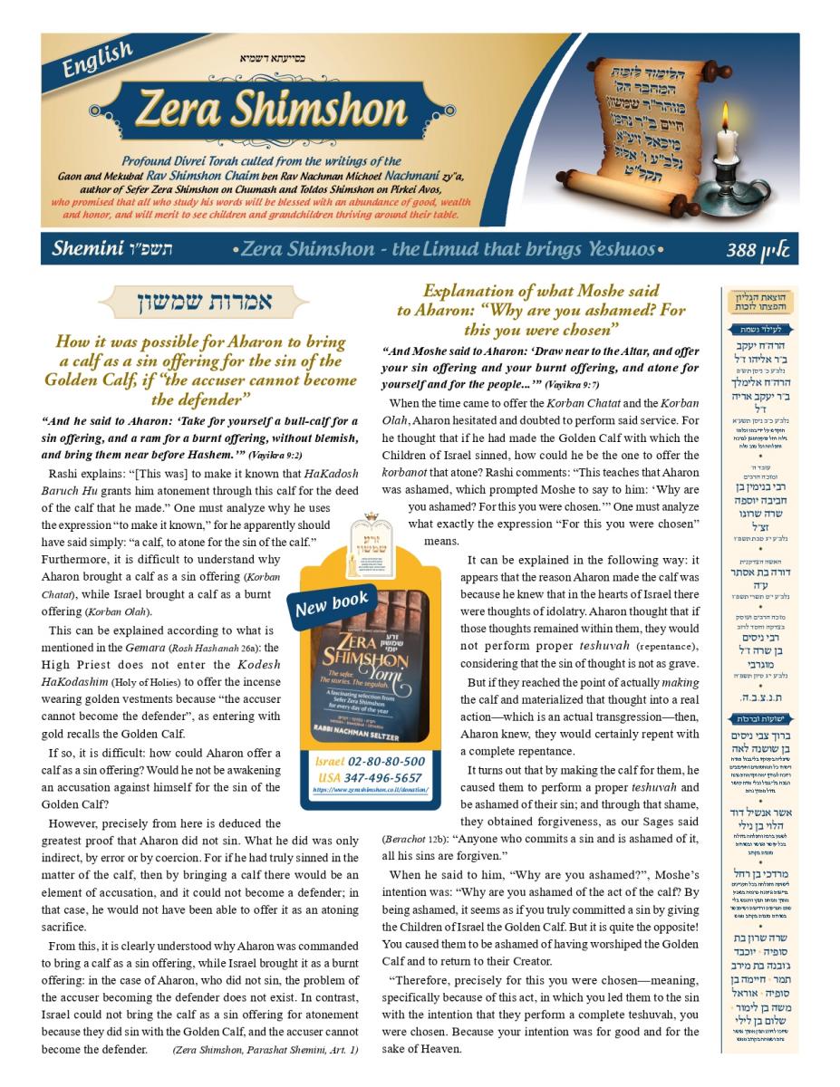 How it was possible for Aharon to bring a calf as a sin offering for the sin of the Golden Calf, if “the accuser cannot become the defender”