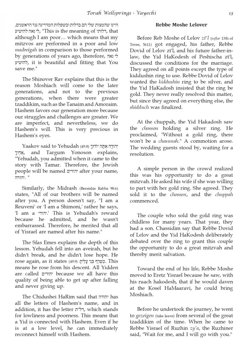 The weekly collected thoughts on the week's parsha from Rabbi Elimelech Biderman Shlita