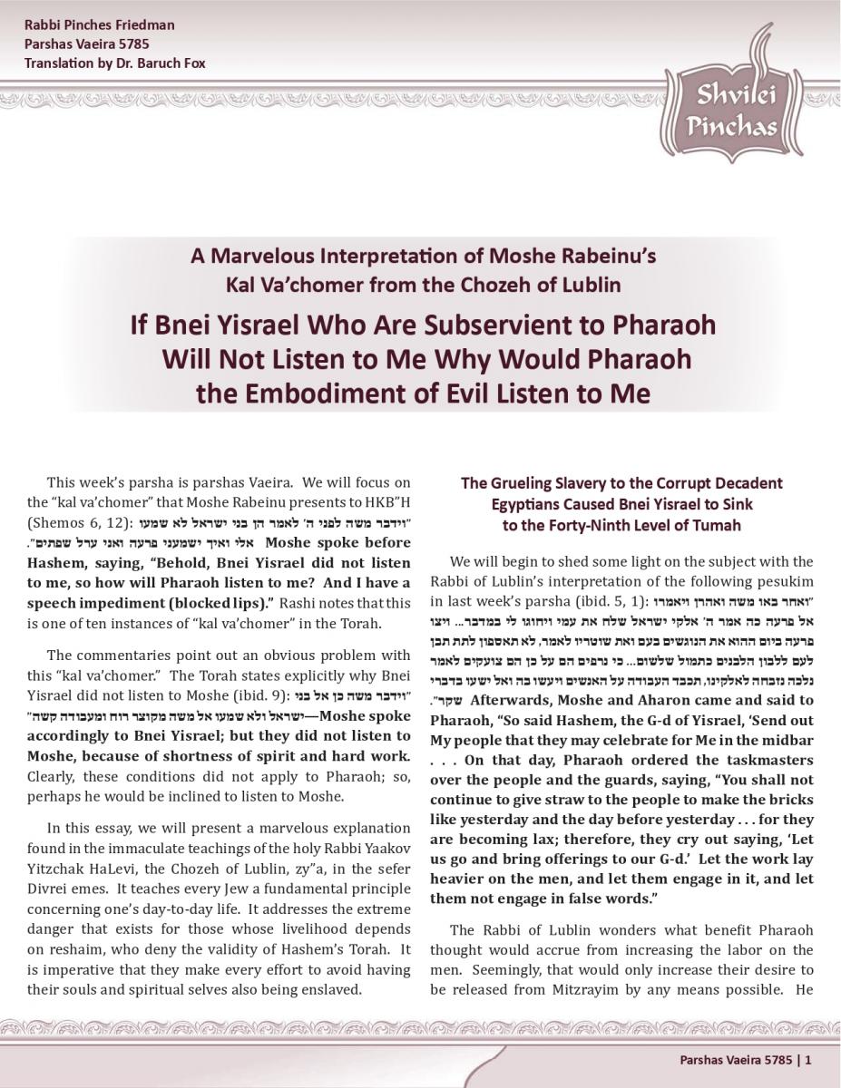 Torah by Rabbi Pinches Friedman Rabbi Pinchas Friedman has for many years carried the title of “Head of the Belza Kollels.” Rabbi Friedman is considered a great master of the תורת הנסתר, being a מקובל, he was officially crowned by the Rebbe of Belza as the “Rosh Yeshiva of מבקשי השם” and make the framework of the lessons in תורת הנסתר that have been held in secret for more than thirty years to an official “yeshiva” – To express the need to strengthen the learners in נגלה, that during the difficult time of עקבתא דמשיחא, those who deserve it should also engage in Torah בפנימיות, so that they can understand the holy things scattered in the books of חסידות.