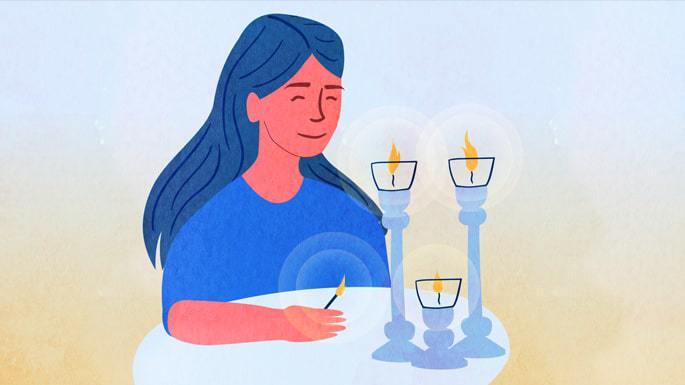 So recently, I decided that I would start carrying this cardboard envelope with the colorful brochure and tea lights in my handbag. If I met a woman who I thought would benefit from it, I would stop her and say, “Would you like a Shabbat candle-lighting kit? It’s free.” Most of the time, they say “No, thank you.” But then, I say, “This is in memory of my mother, who always lit her candles early.”