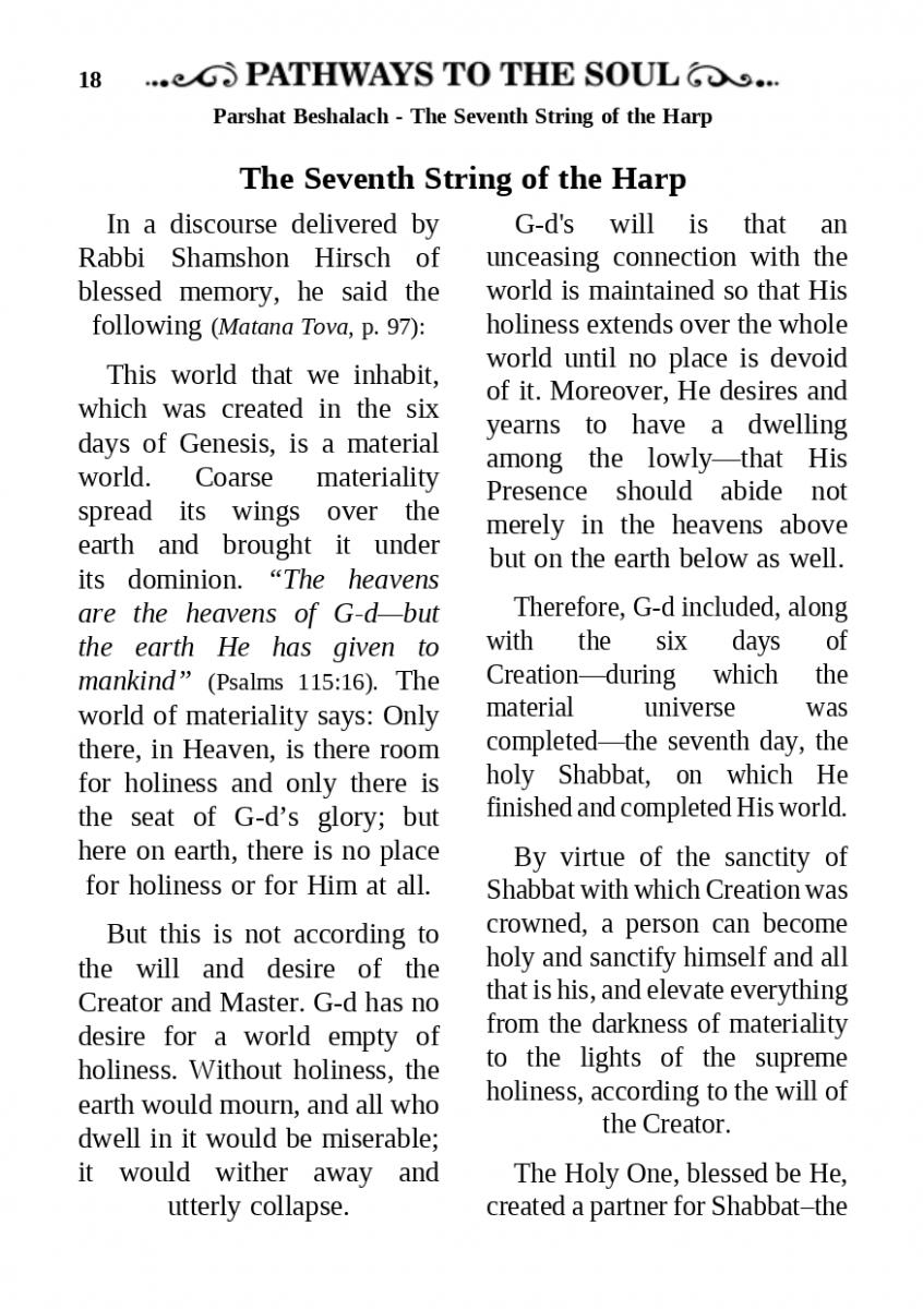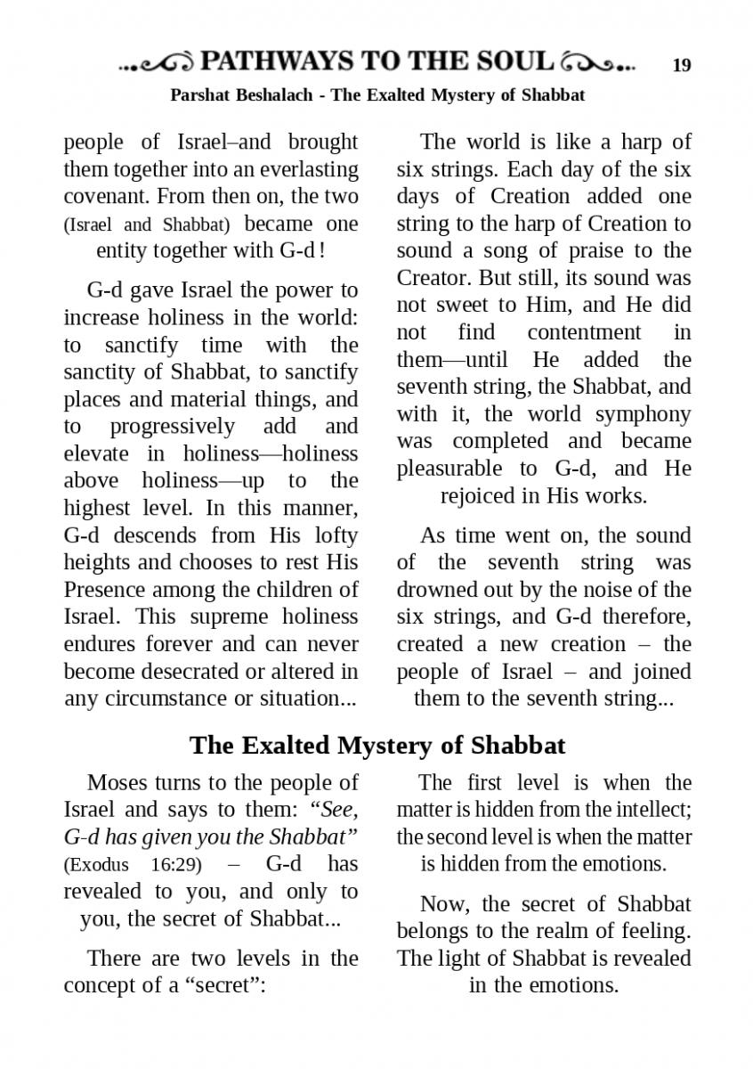 Shabbat Unites G-d with His People