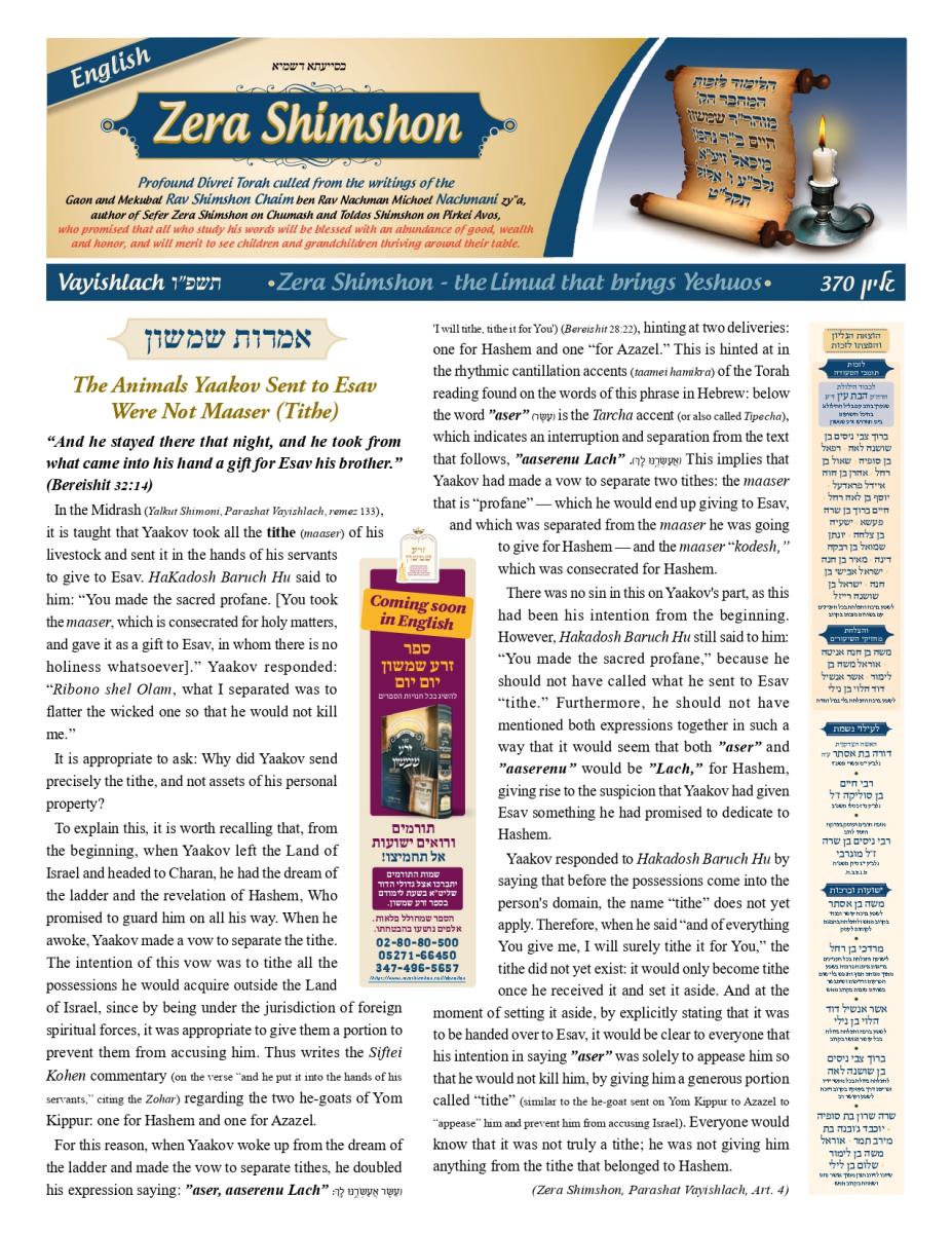 The Animals Yaakov Sent to Esav Were Not Maaser