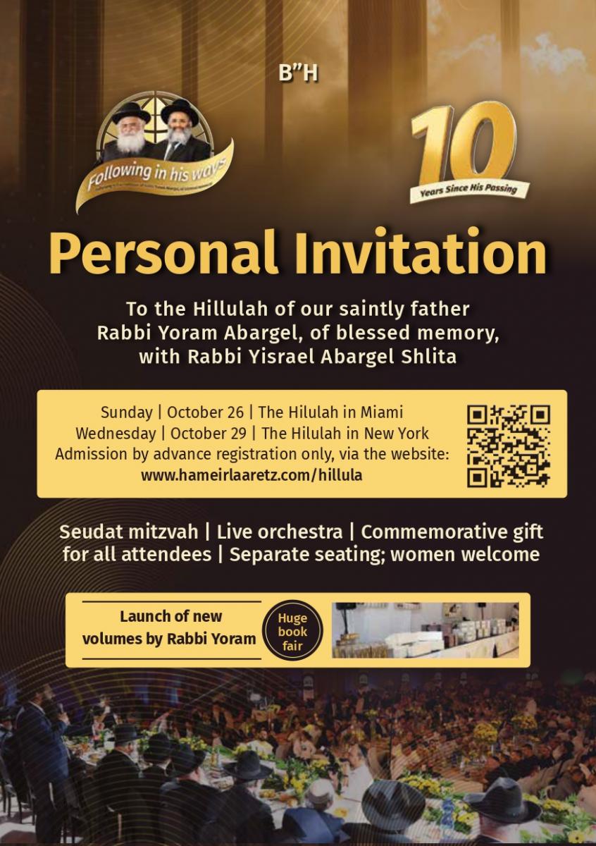 Rabbi Israel Abargel and Hameir Laarets work to spread Torah in Israel and around the world. Their activities include classes, lectures, and daily support and assistance to those in need. Hameir Laarets is a Torah Institute that deals with the publication and distribution of the works and teachings of Rabbi Yoram Michael Abargel zt”l. Hameir Laarets has already released over 50 books and more than 100,000 copies of our publication “Mesillot” are distributed free of charge every week. Our organization also provides daily support and assistance to those in need. Rabbi Yoram Michael Abergel, OB”M was the founder and head of Torah and Hessed institutions called Kol Rina Rav Phelim and Rav Phelim whose center is currently in Netivot . Over 4,000 Avrach scholars study in these institutions. He is the author of: - Bezur Yarom - his lessons on Sefer HaTanya, - Amri Noam - his lessons on the Parshiyot of the week and the festivals of Israel - Kol Rina - prayer arrangement and cycle series