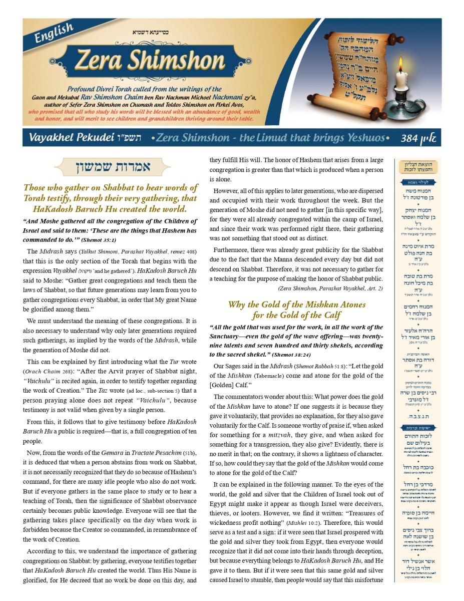 By Zera Shimshon Vayakhel