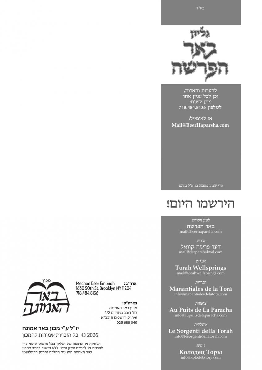 The weekly collected thoughts on the week's parsha from Rabbi Elimelech Biderman Shlita