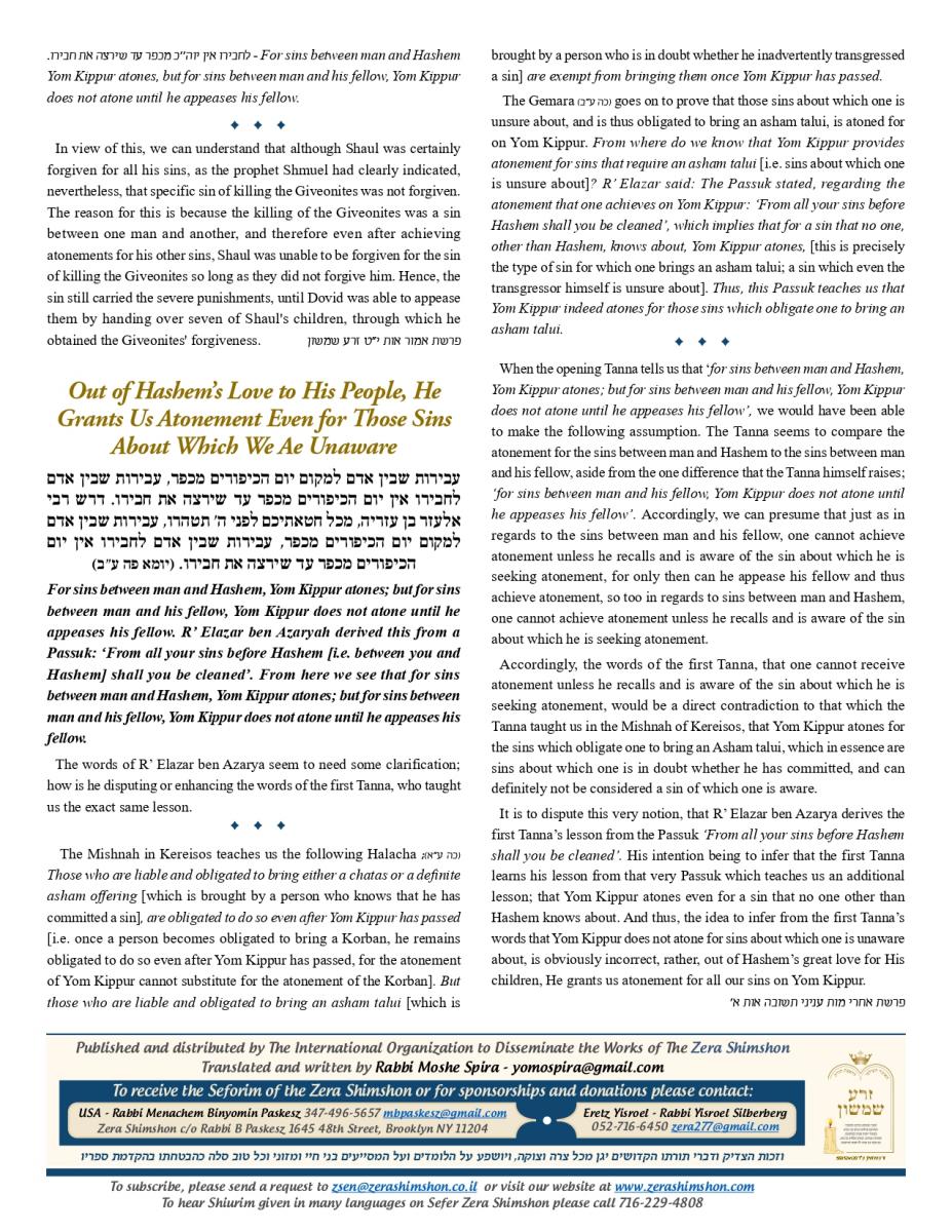 Zera Shimshon - Rabbi Shimshon Chaim ben Rabbi Nachman Michal Nachmani, was a Rabbi of four large communities throughout Italy and in his end of life in the city Reggio Emilia. Rabbi Shimshon Chaim 'Niftar' in the year 1779 in the city Reggio in Itlay. During his funeral, there were many words of praise, not just in his erudition of Torah, but on his love for the Jewish people. The communities in Italy and abroad considered Rabbi Shimshon Chaim their Rebby. Major Rabbis in his generation, wrote amazing things in his honor and wisdom. Including One of the outstanding rabbis figures the 'Hida' (Rabbi Haim Yosef David Azulai ben Rabbi Rephael Yitzhak Zerachia) had testify on Rabbi Shimshon Chaim praise in 'Kedushah' and wisdom and also knowledge in studying 'Kabala' and practical 'Kabala'. Rabbi Shimshon Chaim lived in 'Or ha-Ḥayyim' 'Hakadosh' (Rabbi Chaim ben Atar ben Rabbi Moshe) era, and was in friendship with him. Rabbi Shimshon Chaim had only one child, a son, who died at a young age. Upon this Rabbi Shimshon Chaim decided to dedicate his 'Sefarim' to the memory of this child who had no continuity of a family. In the beginning of his book Rabbi Shimshon Chaim wrote that he need to leave some memory in this world because he has no continuity. And that’s why he wrote the book and named it: "Zera Shimshon", means the Seed of Shimshon. Rabbi Shimshon Chaim publish the book one year before he died. Rabbi Shimshon Chaim placed a lot of his energy, during his lifetime that people should learn from his ''Sefarim''. Rabbi Shimshon Chaim also emphasized, that after his 'Neshama', will leave this world that people should continue to learn from his ''Sefarim''. What is most unusual for a Tzadik of this stature, was that he made a promise. That promise is that anyone that takes upon himself to learn from his writing, he promises "children, praise, health, 'Parnasa', wealth, honor".