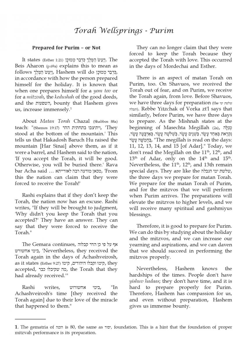 Prepared for Purim – or Not