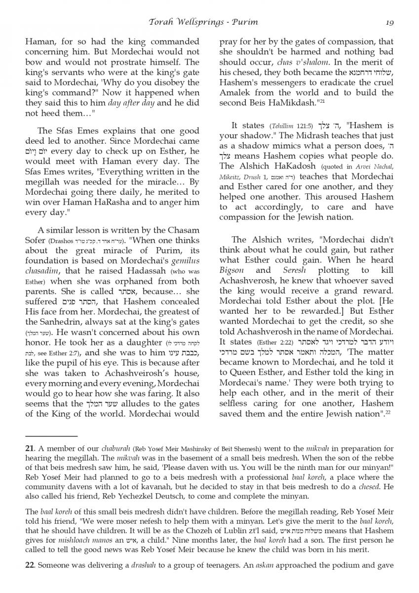 The weekly collected thoughts on the week's parsha from Rabbi Elimelech Biderman Shlita