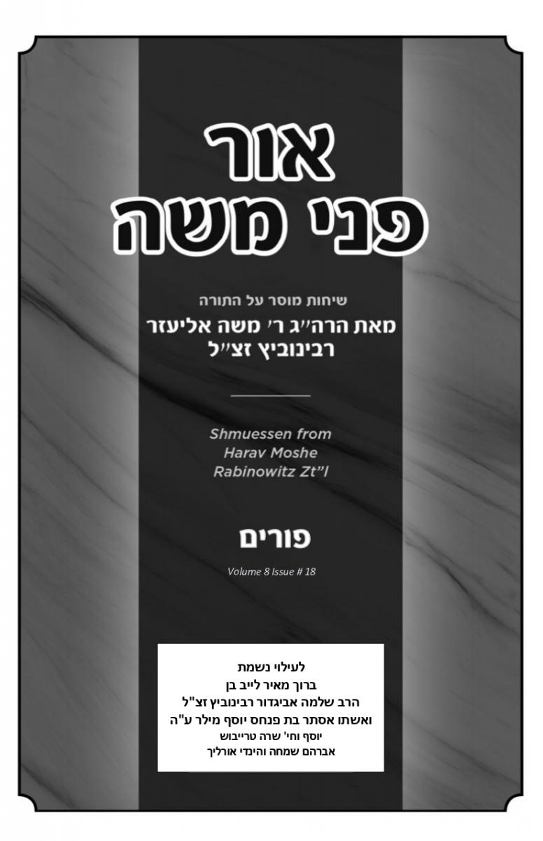 Hagaon Rav Moshe Eliezer Rabinowitz zt”l, was the menahel of Mesivta Keren Hatorah in Lakewood and rov of Bais Medrash Tiferes Shimon.