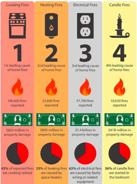 Statistics shared by A&J to their followers on Instagram explaining the leading causes of home fires.