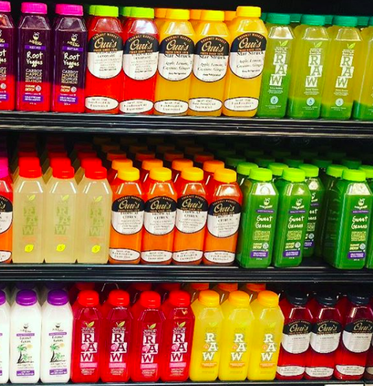 Fresh cold pressed juices available for sale at Ouri's.