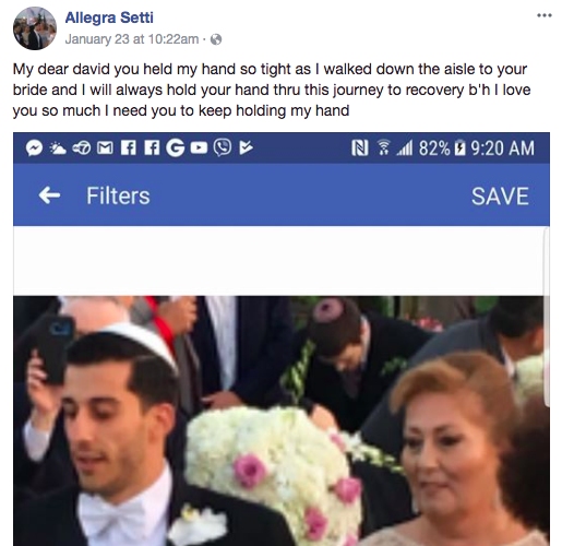 On Jan. 20, a terrible car accident took place and community member David Setti, 28, was badly injured. David’s car flipped over three times and his body was ejected from the vehicle after another failed to make a full stop at a stop sign in Brooklyn, NY. It was nothing short of a miracle that the firefighters on the scene were able to revive him after performing CPR for ten minutes. David was pinned under his car and suffered from cardiac arrest and broke six ribs on one side of his body.
