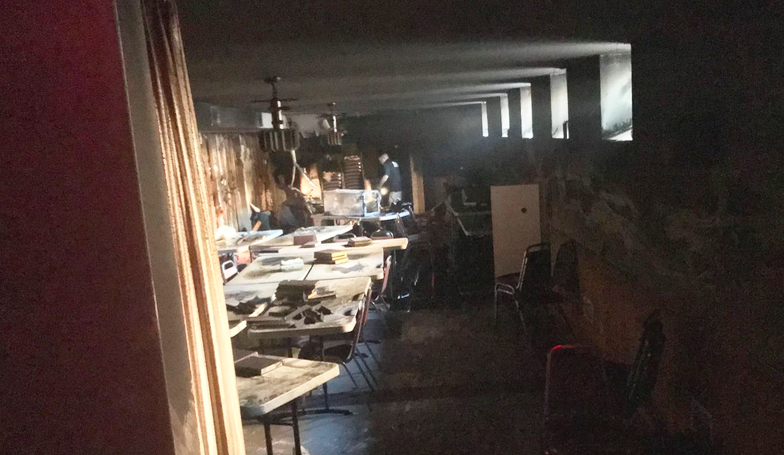 The basement of Agudath Israel of Flatbush damaged from the fire.
