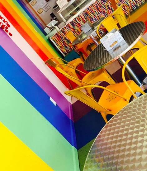 Sophia also knew she wanted something made that would incorporate popsicle sticks. Margalit decided she would cover the whole register and ice cream counter in hand painted rainbow colored popsicle sticks. Customers loved the colorful and creative additions to the shop. Later, Urban Pops hired Margalit again to design two other locations.