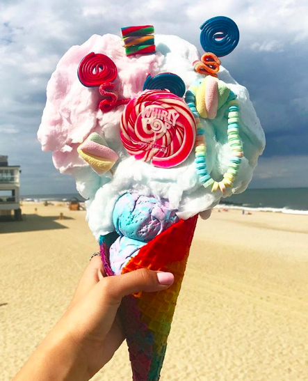 Another original treat they are famous for is their Coney Waffle. This menu item is made with their patented style waffle. It’s shaped like a hot dog bun and filled with scoops of ice cream. Since they are the creators and have the cone patented, they are the only ice cream shop able to serve this style. It eliminates the need for a bowl and spoon. You can eat it like a hot dog with your hands which means zero waste. You can also walk and eat it which is ideal for the shop’s boardwalk and beach settings.