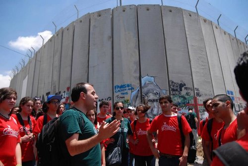 A summer camp activity of the “Go Palestine” program, at the Israeli security fence along the border with the disputed territories. Credit: Facebook.