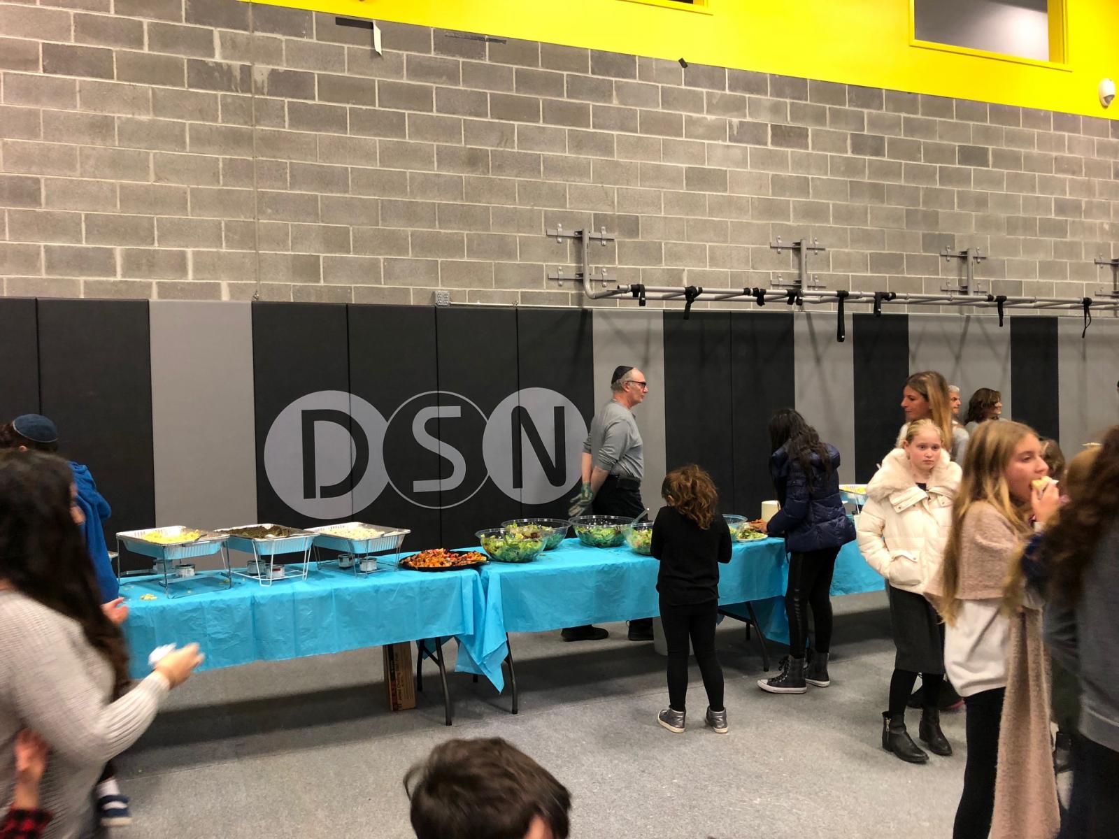 Nicole’s Kitchen catered the night’s dairy dinner. There was delicious pasta, salads, desserts, and more. Donuts were served to the attendees as an oily reminder of the miracle of Hanukkah! DSN hosts this once a year to bring the community together in one place at one time to celebrate the holiday and be united.