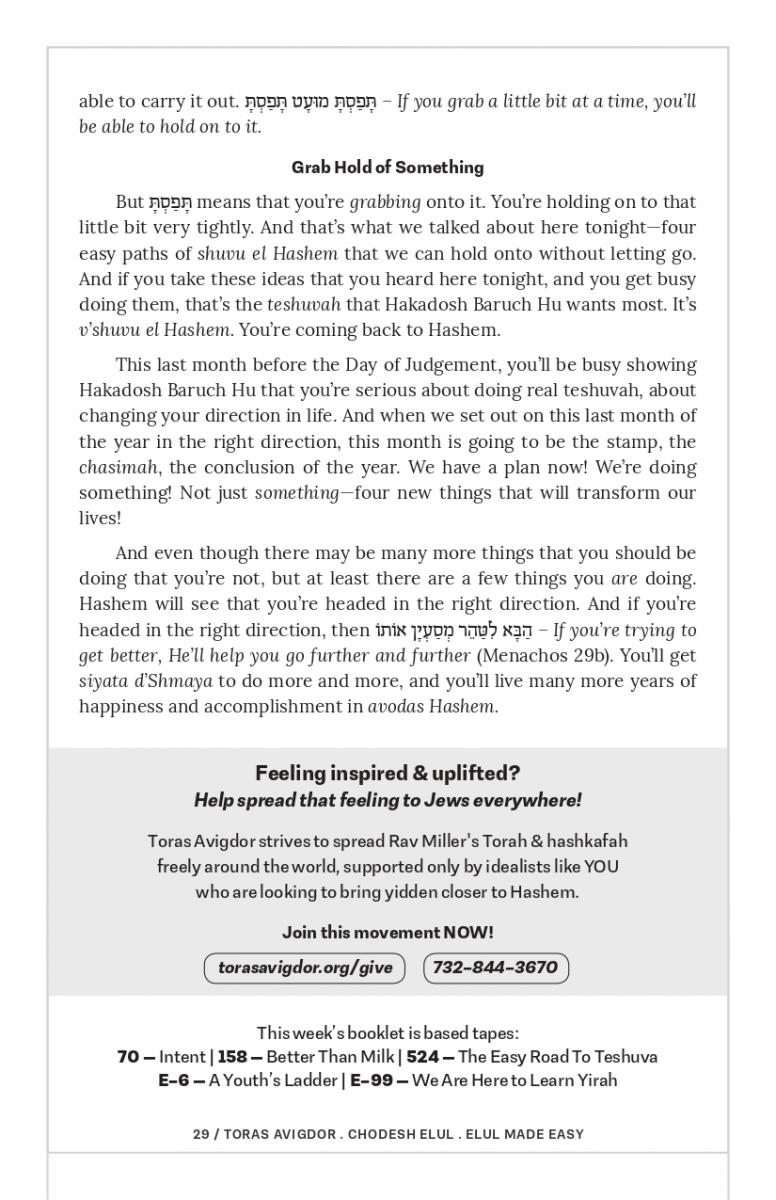 Toras Avigdor was founded with the goal of spreading Rav Miller’s Torah and Hashkafos.