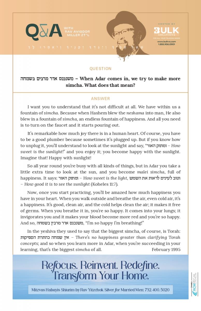 Toras Avigdor was founded with the goal of spreading Rav Miller’s Torah and Hashkafos.