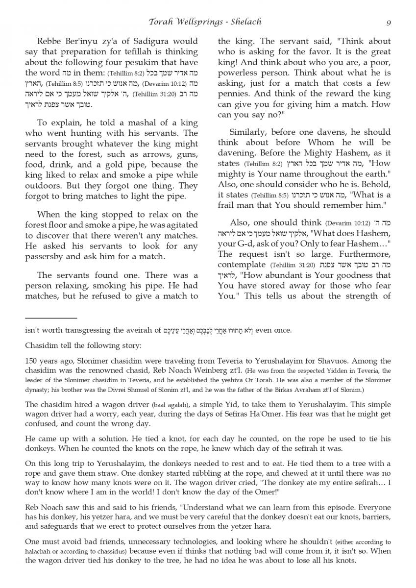 The weekly collected thoughts on the week's parsha from Rabbi Elimelech Biderman Shlita