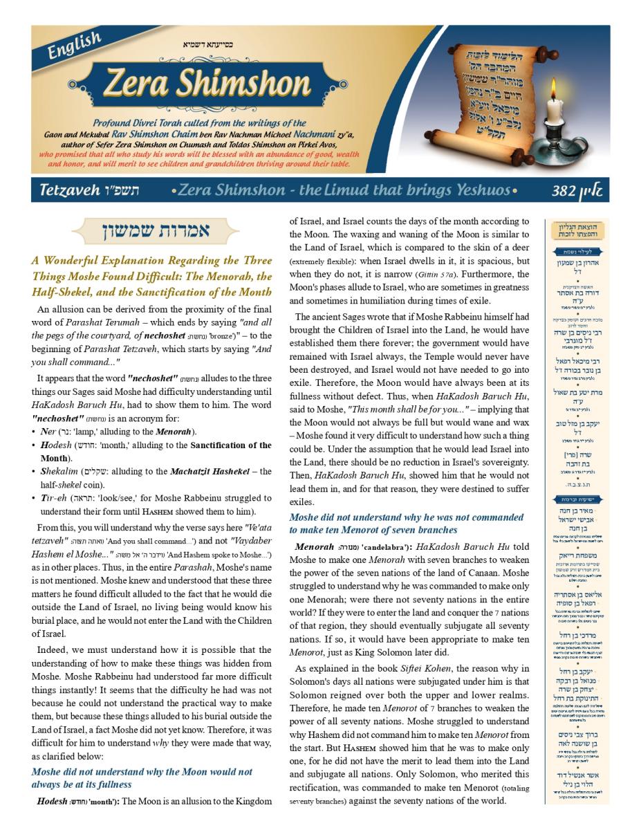 By Zera Shimshon Tetzaveh