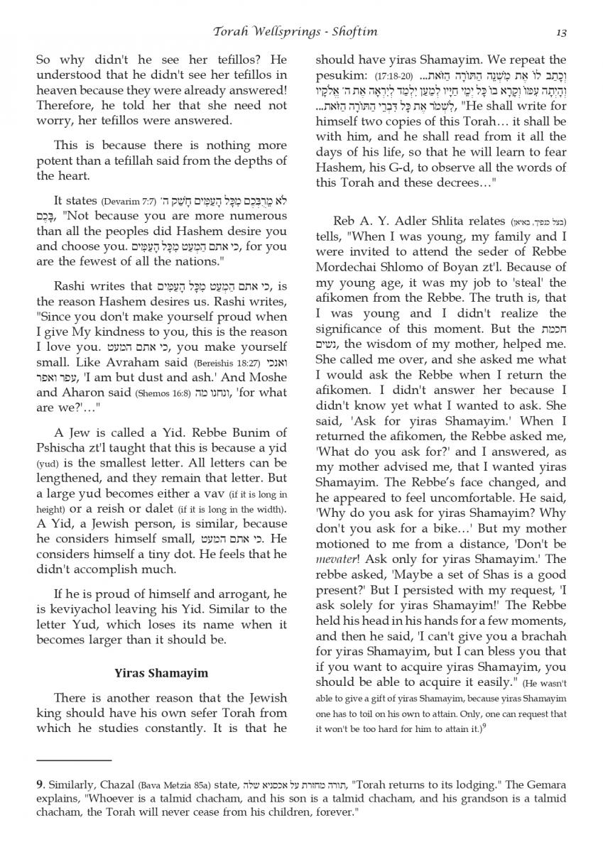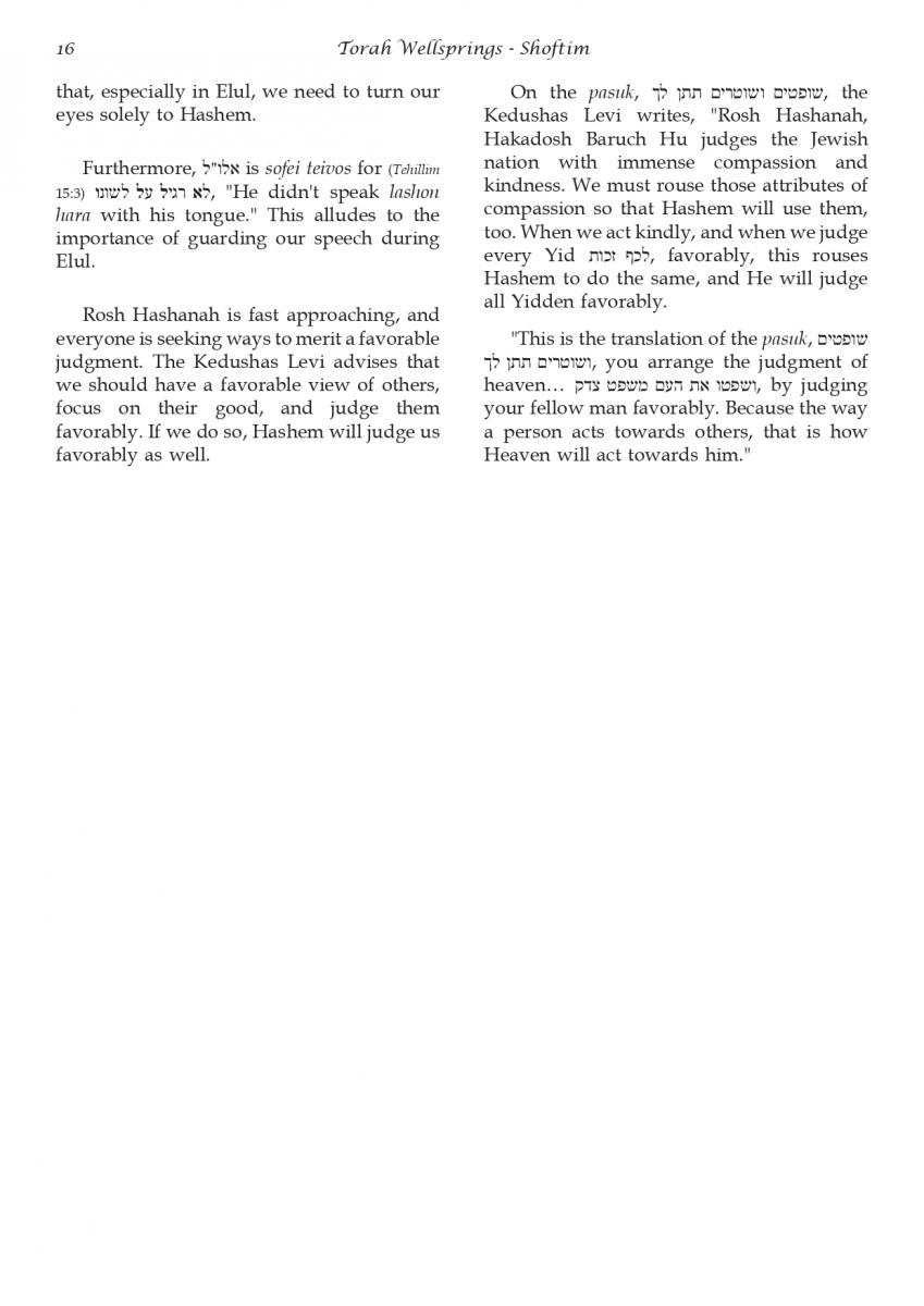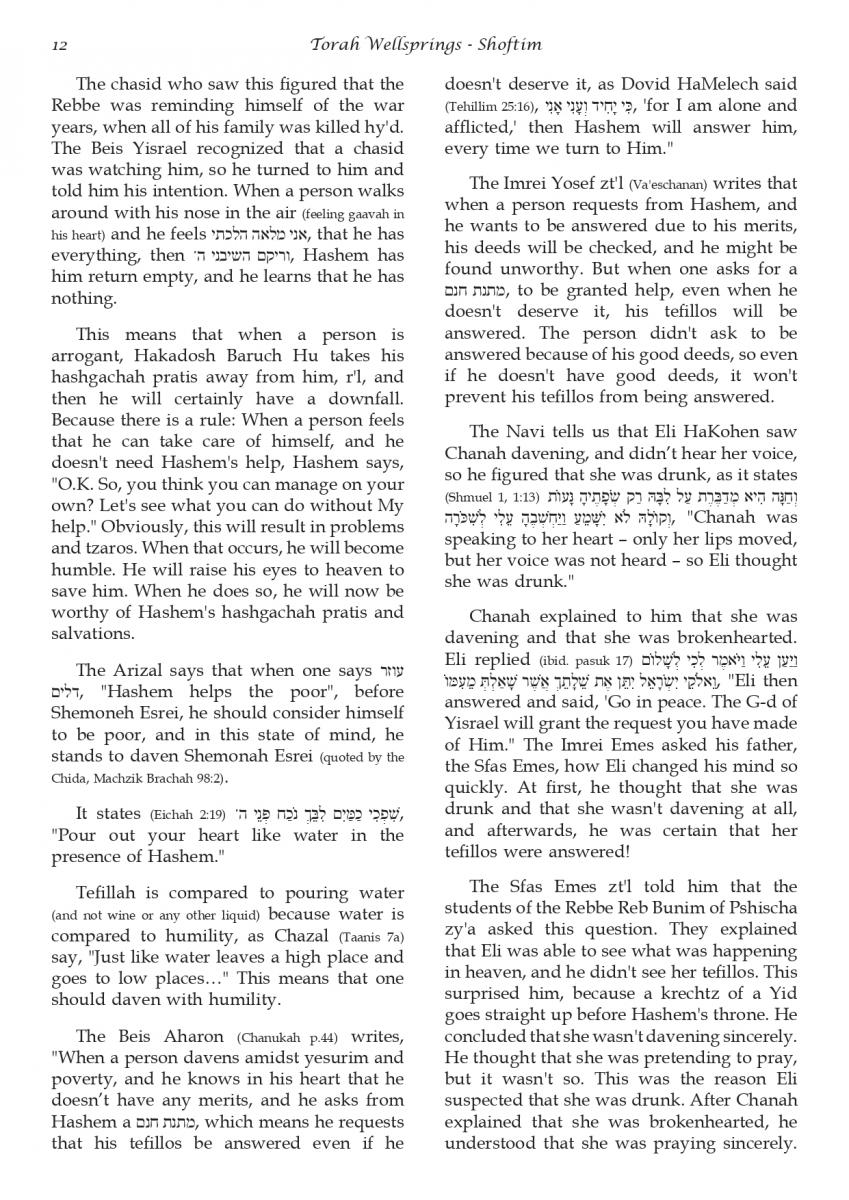 The weekly collected thoughts on the week's parsha from Rabbi Elimelech Biderman Shlita