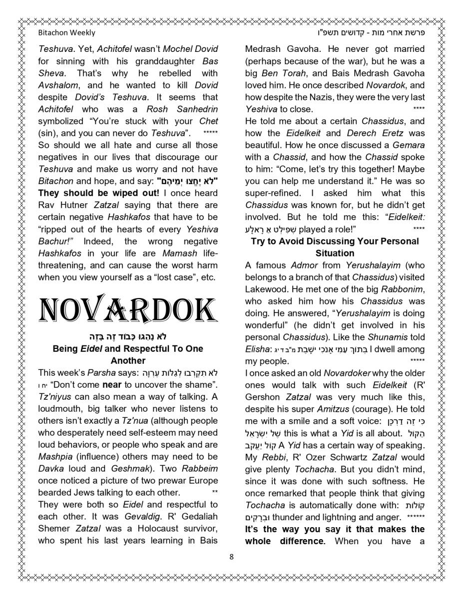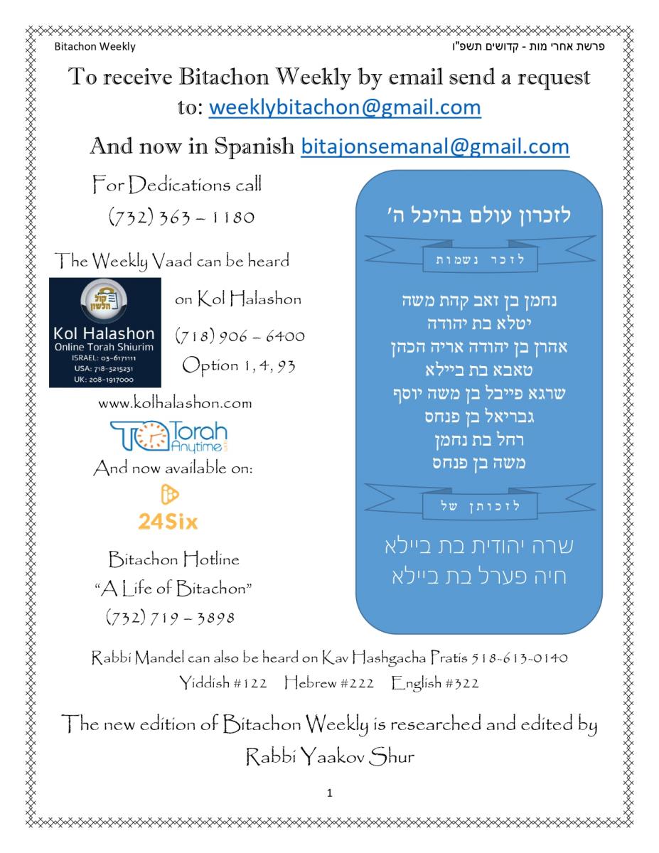 - “You shall be holy, for I, Hashem, your G-d, am holy”