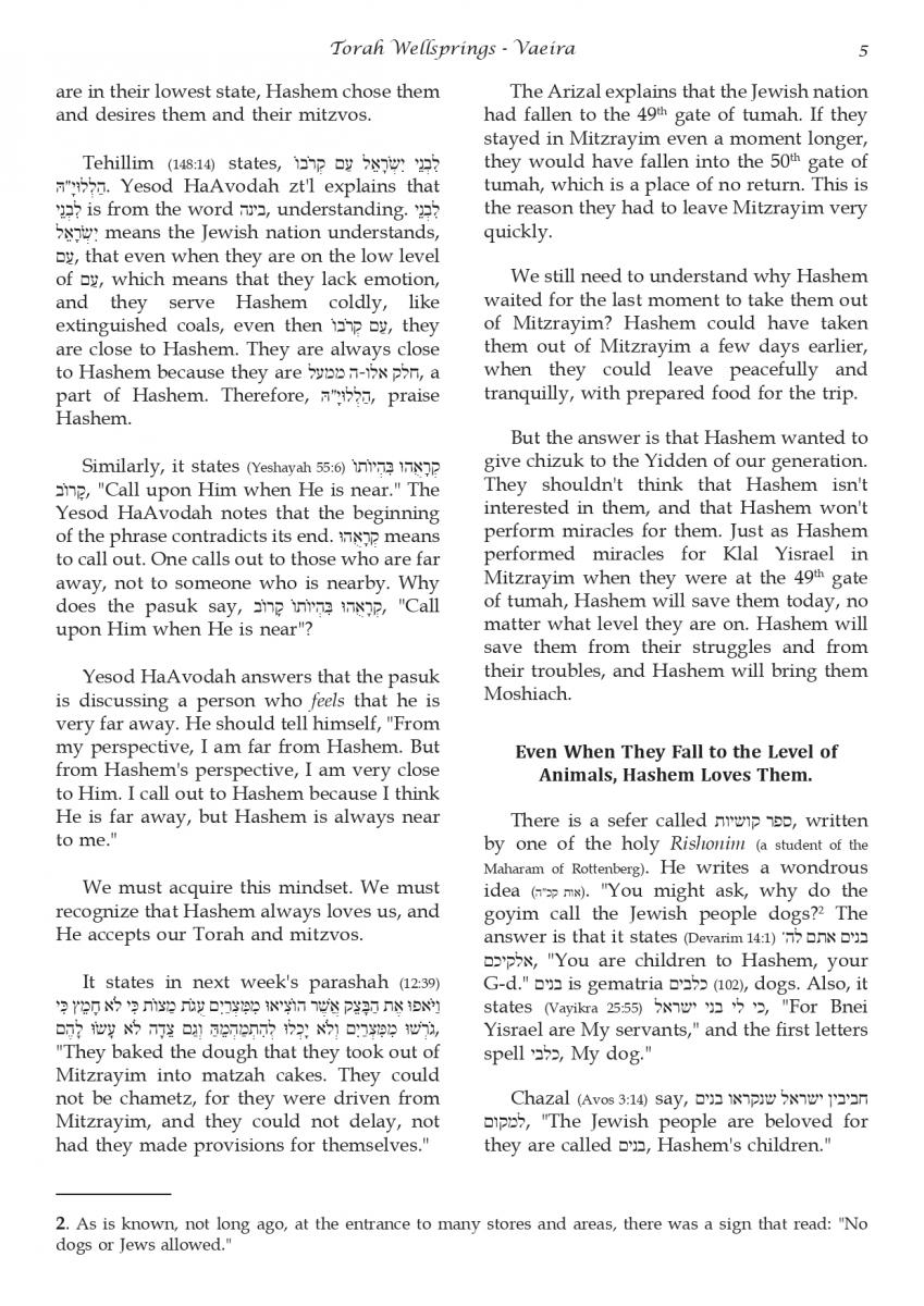 Even When Bnei Yisrael are at a Low Level, Hashem Loves Them