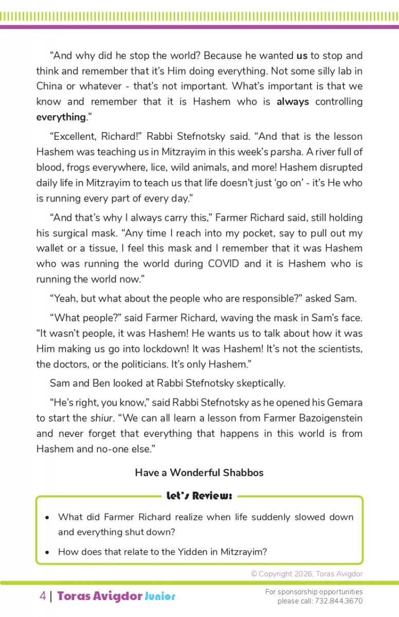 Toras Avigdor was founded with the goal of spreading Rav Miller’s Torah and Hashkafos bot for adults and children.