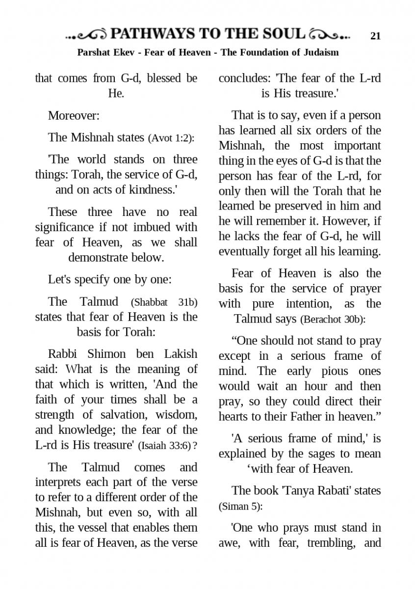 Fear of Heaven - Basis for Man, the World, and All of Judaism