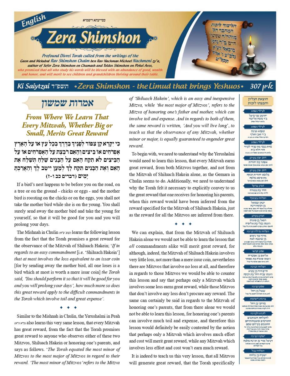 From Where We Learn That Every Mitzvah, Whether Big or Small, Merits Great Reward