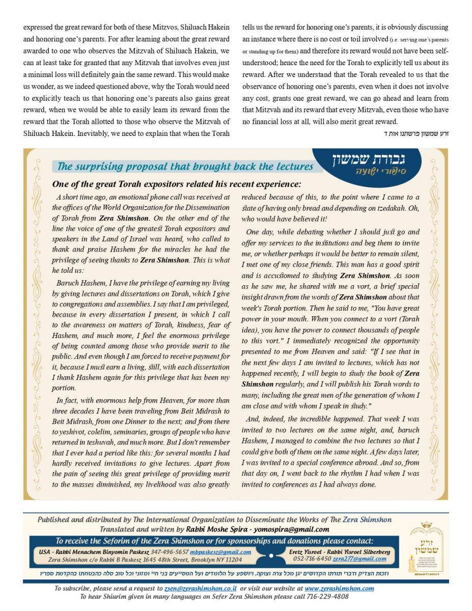 Zera Shimshon - Rabbi Shimshon Chaim ben Rabbi Nachman Michal Nachmani, was a Rabbi of four large communities throughout Italy and in his end of life in the city Reggio Emilia. Rabbi Shimshon Chaim 'Niftar' in the year 1779 in the city Reggio in Itlay. During his funeral, there were many words of praise, not just in his erudition of Torah, but on his love for the Jewish people. The communities in Italy and abroad considered Rabbi Shimshon Chaim their Rebby. Major Rabbis in his generation, wrote amazing things in his honor and wisdom. Including One of the outstanding rabbis figures the 'Hida' (Rabbi Haim Yosef David Azulai ben Rabbi Rephael Yitzhak Zerachia) had testify on Rabbi Shimshon Chaim praise in 'Kedushah' and wisdom and also knowledge in studying 'Kabala' and practical 'Kabala'. Rabbi Shimshon Chaim lived in 'Or ha-Ḥayyim' 'Hakadosh' (Rabbi Chaim ben Atar ben Rabbi Moshe) era, and was in friendship with him. Rabbi Shimshon Chaim had only one child, a son, who died at a young age. Upon this Rabbi Shimshon Chaim decided to dedicate his 'Sefarim' to the memory of this child who had no continuity of a family. In the beginning of his book Rabbi Shimshon Chaim wrote that he need to leave some memory in this world because he has no continuity. And that’s why he wrote the book and named it: "Zera Shimshon", means the Seed of Shimshon. Rabbi Shimshon Chaim publish the book one year before he died. Rabbi Shimshon Chaim placed a lot of his energy, during his lifetime that people should learn from his ''Sefarim''. Rabbi Shimshon Chaim also emphasized, that after his 'Neshama', will leave this world that people should continue to learn from his ''Sefarim''. What is most unusual for a Tzadik of this stature, was that he made a promise. That promise is that anyone that takes upon himself to learn from his writing, he promises "children, praise, health, 'Parnasa', wealth, honor".