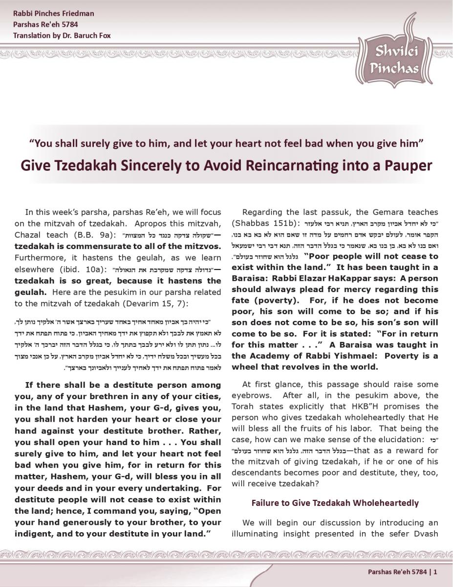 Give Tzedakah Sincerely to Avoid Reincarnating into a Pauper