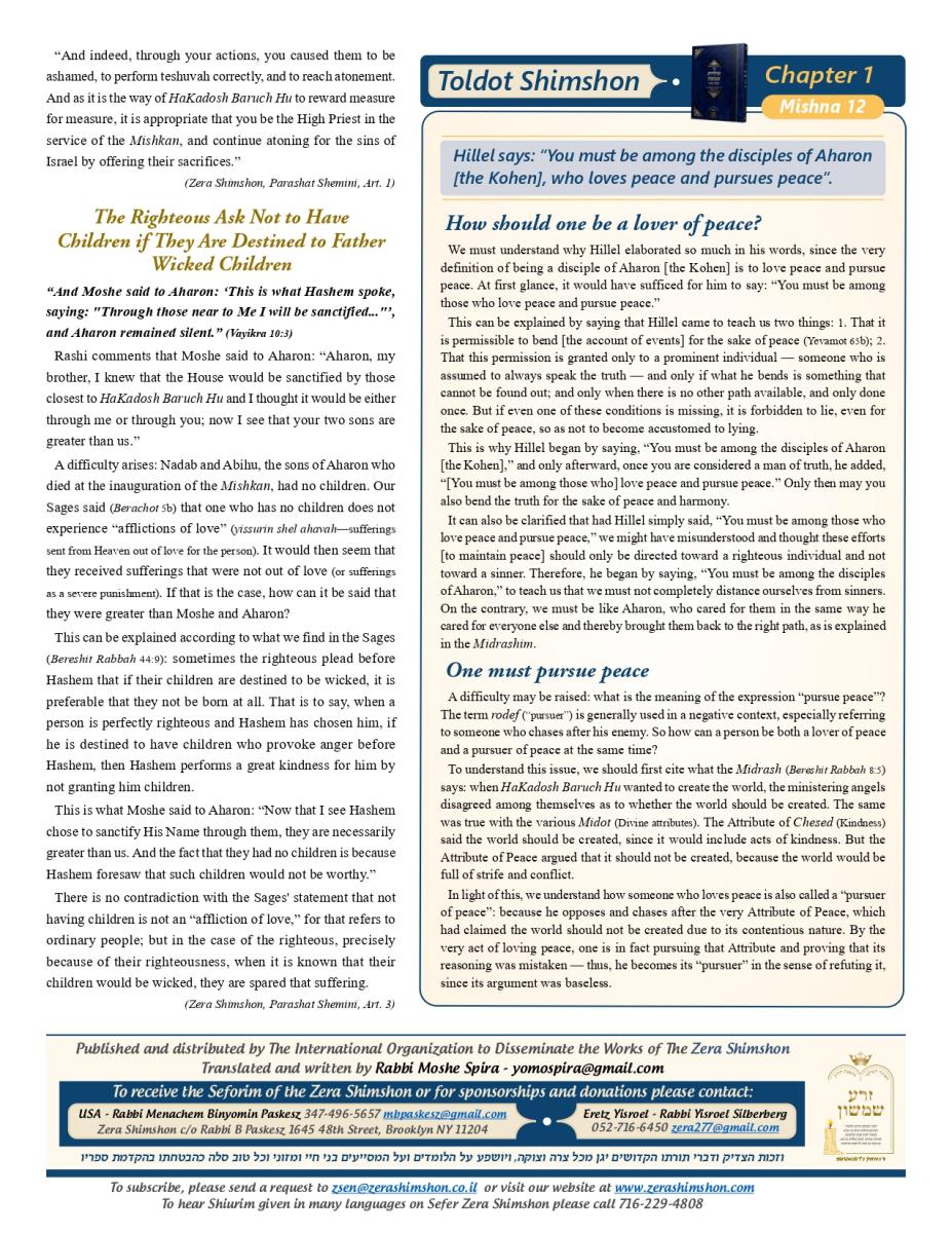 Zera Shimshon - Rabbi Shimshon Chaim ben Rabbi Nachman Michal Nachmani, was a Rabbi of four large communities throughout Italy and in his end of life in the city Reggio Emilia. Rabbi Shimshon Chaim 'Niftar' in the year 1779 in the city Reggio in Itlay. During his funeral, there were many words of praise, not just in his erudition of Torah, but on his love for the Jewish people. The communities in Italy and abroad considered Rabbi Shimshon Chaim their Rebby. Major Rabbis in his generation, wrote amazing things in his honor and wisdom. Including One of the outstanding rabbis figures the 'Hida' (Rabbi Haim Yosef David Azulai ben Rabbi Rephael Yitzhak Zerachia) had testify on Rabbi Shimshon Chaim praise in 'Kedushah' and wisdom and also knowledge in studying 'Kabala' and practical 'Kabala'. Rabbi Shimshon Chaim lived in 'Or ha-Ḥayyim' 'Hakadosh' (Rabbi Chaim ben Atar ben Rabbi Moshe) era, and was in friendship with him. Rabbi Shimshon Chaim had only one child, a son, who died at a young age. Upon this Rabbi Shimshon Chaim decided to dedicate his 'Sefarim' to the memory of this child who had no continuity of a family. In the beginning of his book Rabbi Shimshon Chaim wrote that he need to leave some memory in this world because he has no continuity. And that’s why he wrote the book and named it: "Zera Shimshon", means the Seed of Shimshon. Rabbi Shimshon Chaim publish the book one year before he died. Rabbi Shimshon Chaim placed a lot of his energy, during his lifetime that people should learn from his ''Sefarim''. Rabbi Shimshon Chaim also emphasized, that after his 'Neshama', will leave this world that people should continue to learn from his ''Sefarim''. What is most unusual for a Tzadik of this stature, was that he made a promise. That promise is that anyone that takes upon himself to learn from his writing, he promises "children, praise, health, 'Parnasa', wealth, honor".