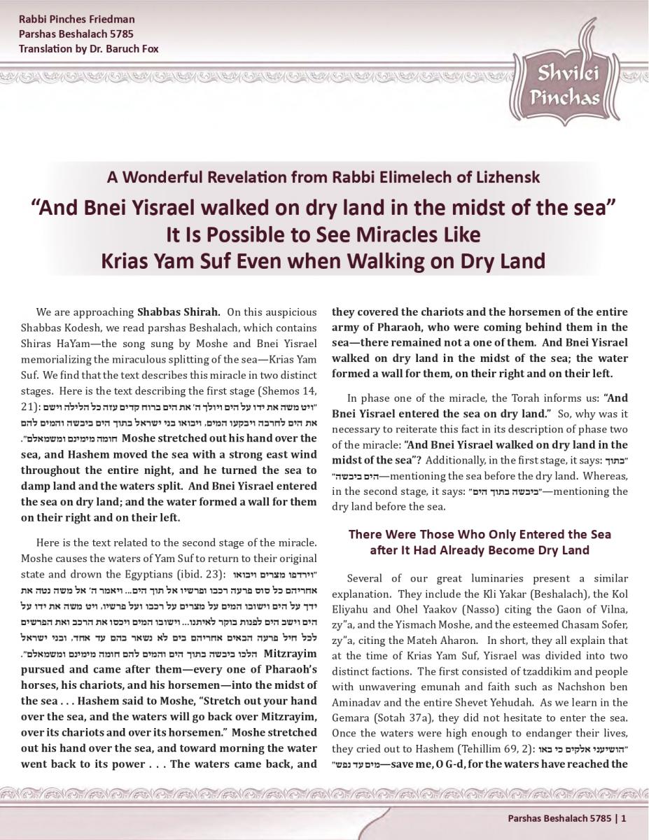 It Is Possible to See Miracles Like Krias Yam Suf Even when Walking on Dry Land