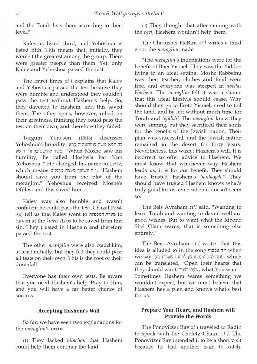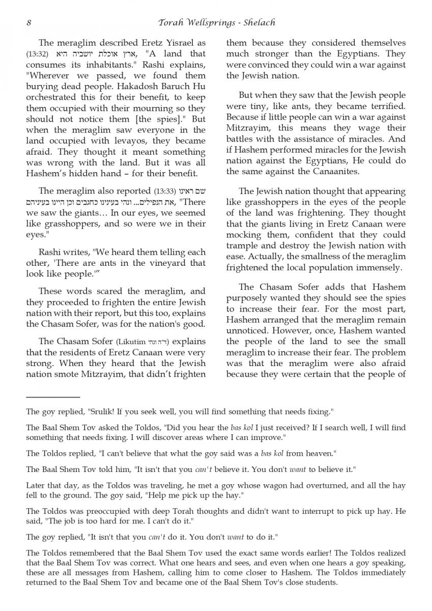The weekly collected thoughts on the week's parsha from Rabbi Elimelech Biderman Shlita