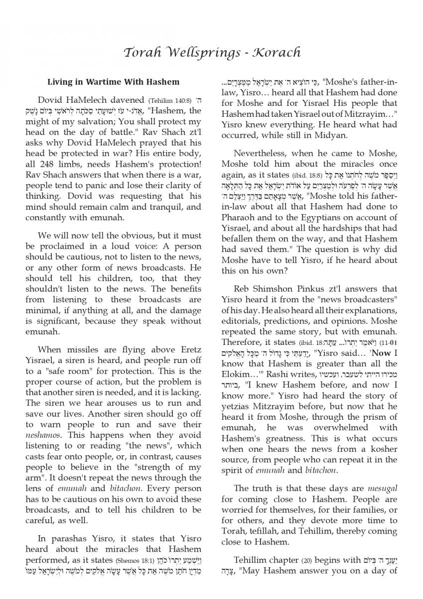 Living in Wartime With Hashem