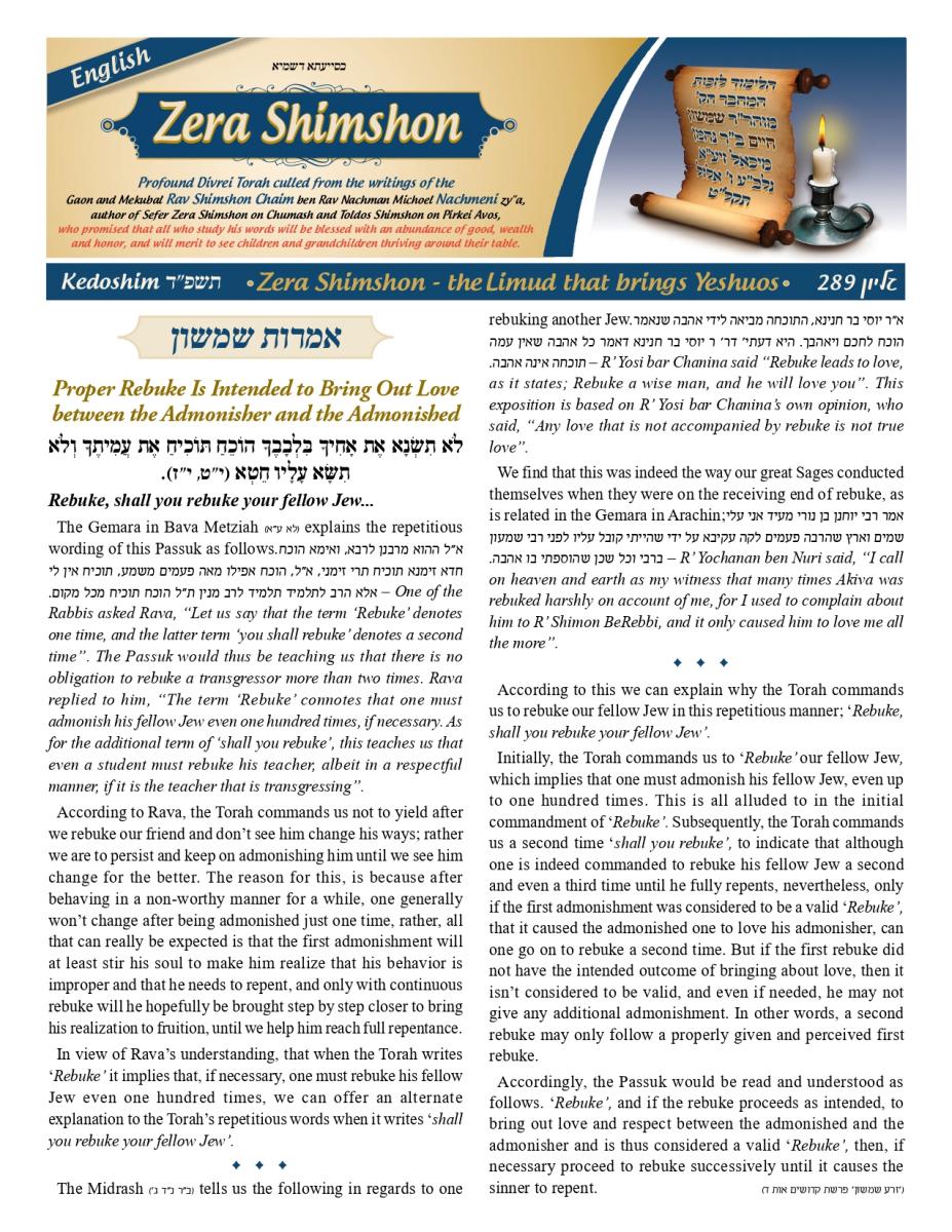 By Zera Shimshon Kedoshim