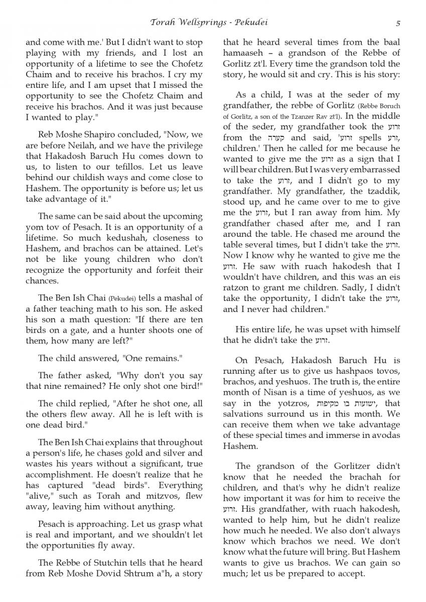 The weekly collected thoughts on the week's parsha from Rabbi Elimelech Biderman Shlita