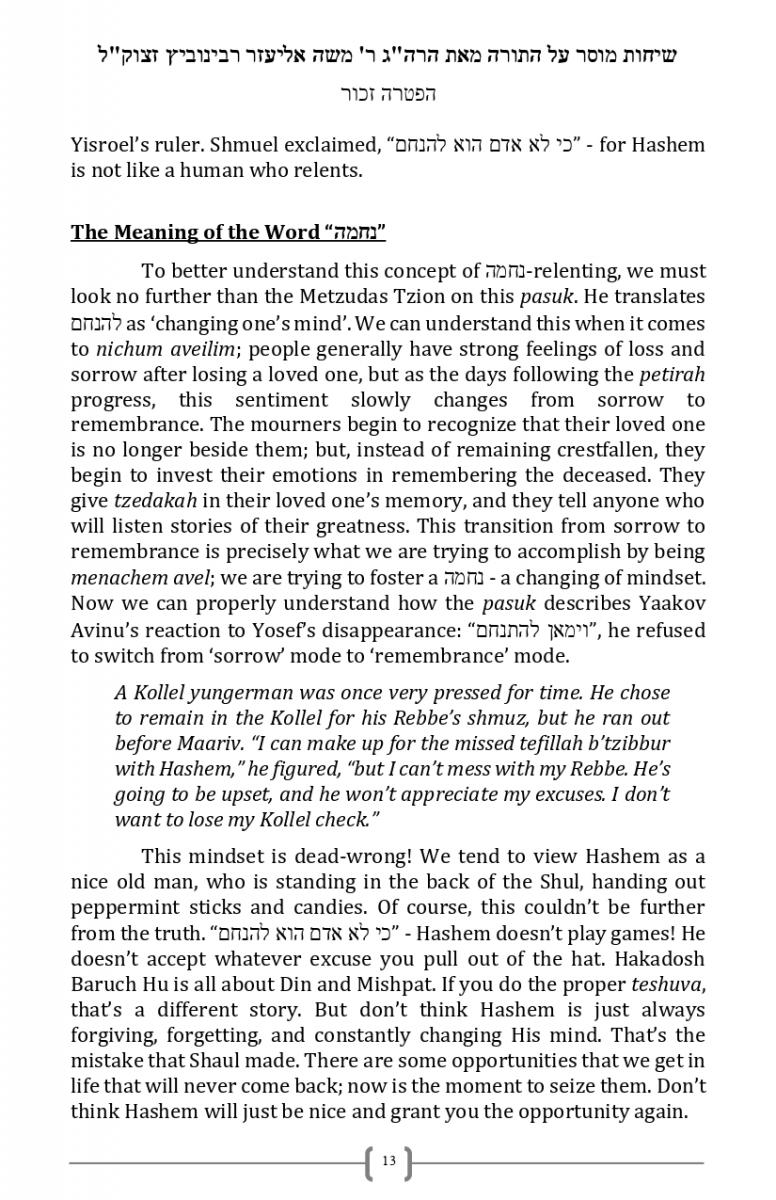Hagaon Rav Moshe Eliezer Rabinowitz zt”l, was the menahel of Mesivta Keren Hatorah in Lakewood and rov of Bais Medrash Tiferes Shimon.