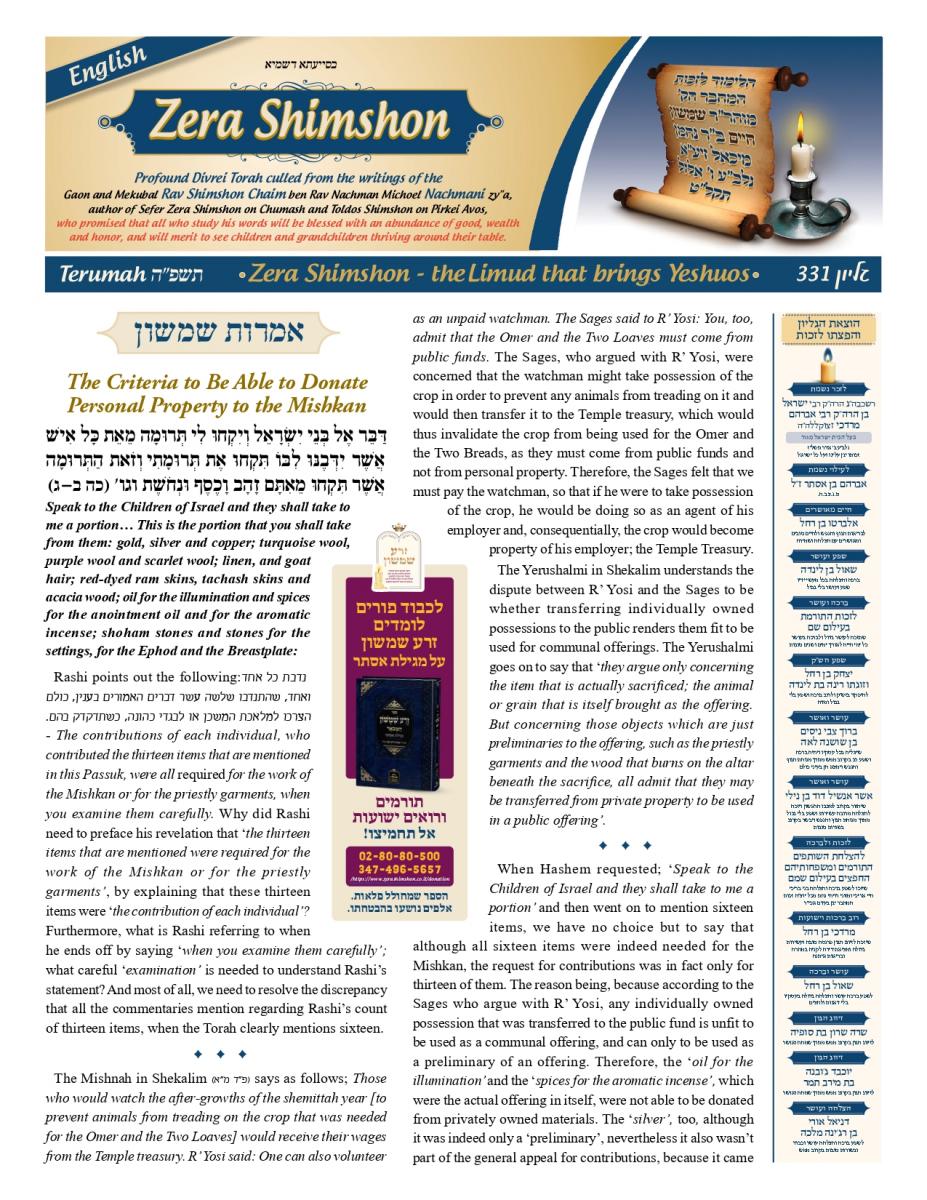 The Criteria to Be Able to Donate Personal Property to the Mishkan
